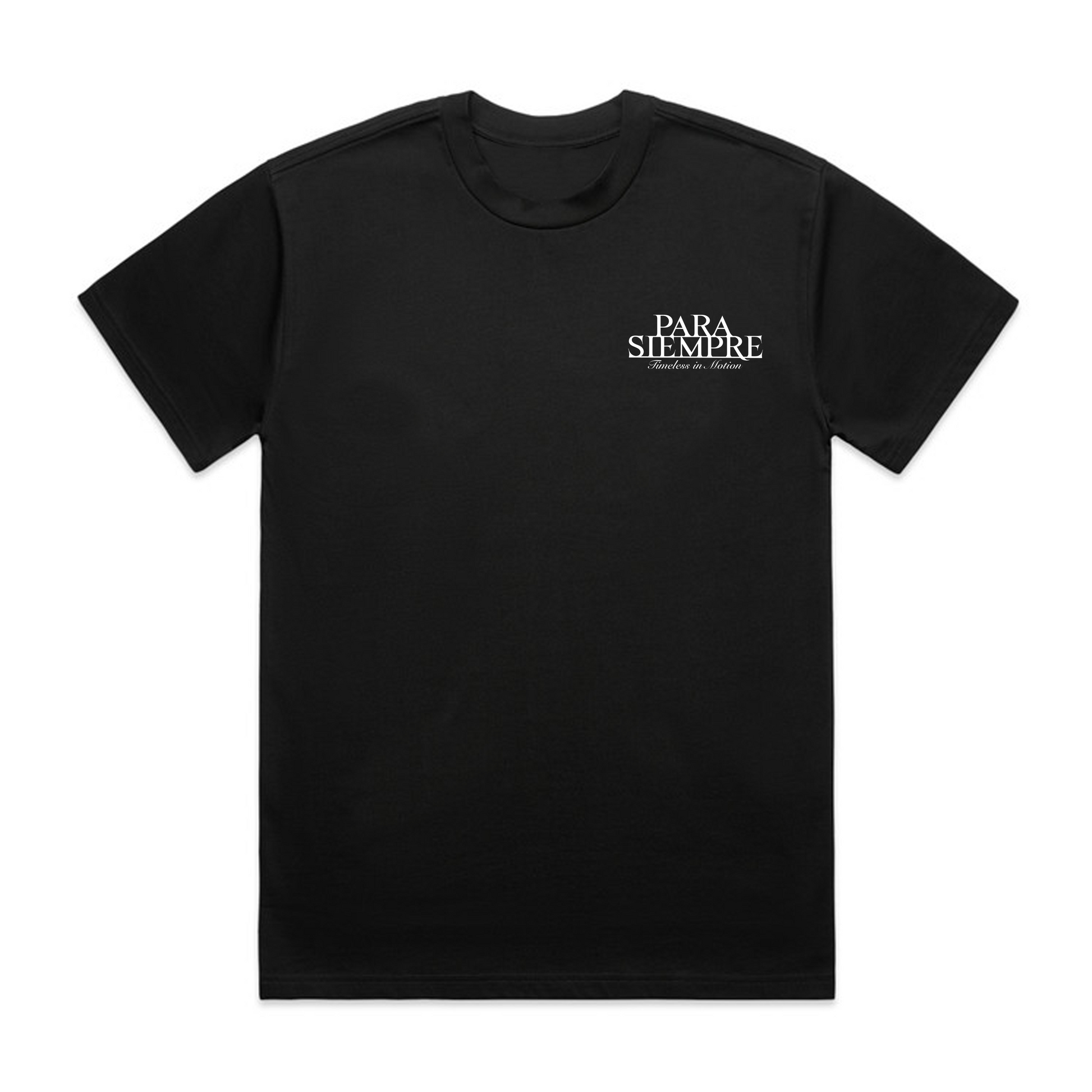 Design Details: Printed Para Siempre Timeless in Motion Front, Printed Para Siempre timeless in motion on Back.